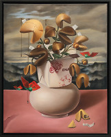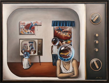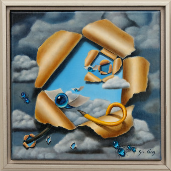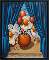 Sleight Of Hand investigates perceptions of reality via surrealism and trompe-l'oeil painting by three artists who use a combination of craft and imagination to create visual tricks on the viewer's mind. They juxtapose seemingly ordinary things with elements of the extraordinary, harkening thought about what is real, imagined, and induced. Reza Alhosseini critiques media as fabricating reality, while J.L. King and Monty Guy use the medium of painting to create alternative reality.